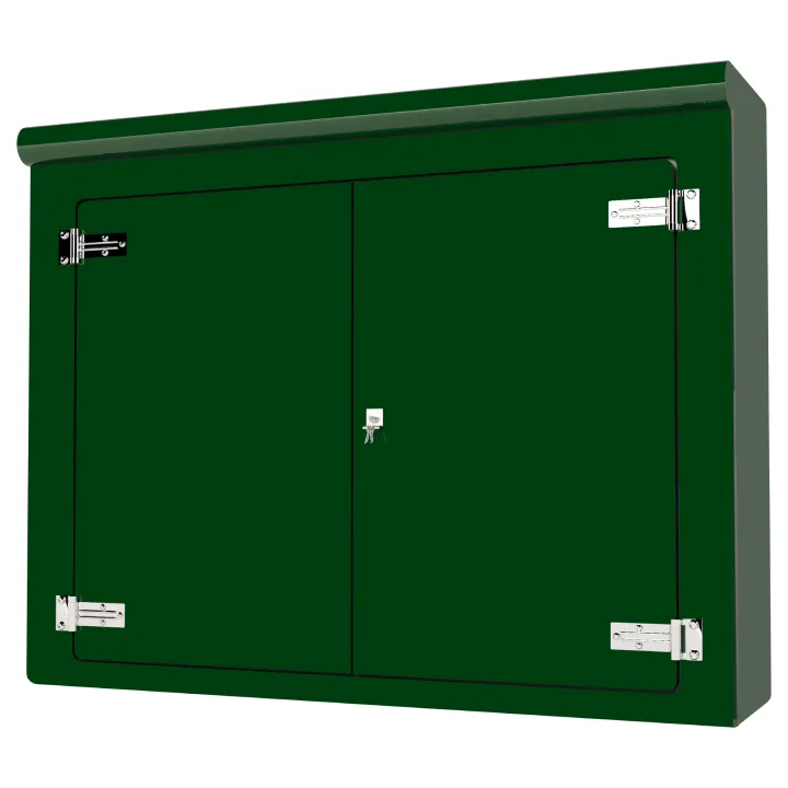 Our VR11 GRP Cabinet is available in Green (BS 14-C-39) and Grey (BS 10-A-05) as standard and is finished internally with a fire-retardant resin, it has a Single Skin Construction and comes complete with stainless steel hinges, security fixings, a cylinder nightlatch lock as well as a surface treated ply backboard, it has an open base c/w an internal fixing down flange for floor mounting. Delivery is normally made by National Carrier.