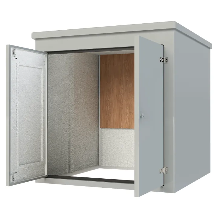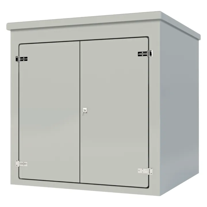 Our VR15 GRP Enclosure is available in Green (BS 14-C-39) and Grey (BS 10-A-05) as standard and is finished internally with a fire-retardant resin, it has a 12mm ply core encapsulated within the construction and comes complete with stainless steel hinges, security fixings, a cylinder nightlatch lock, hold open door stays and a surface treated ply backboard, it has an open base c/w an internal fixing down flange for floor mounting.