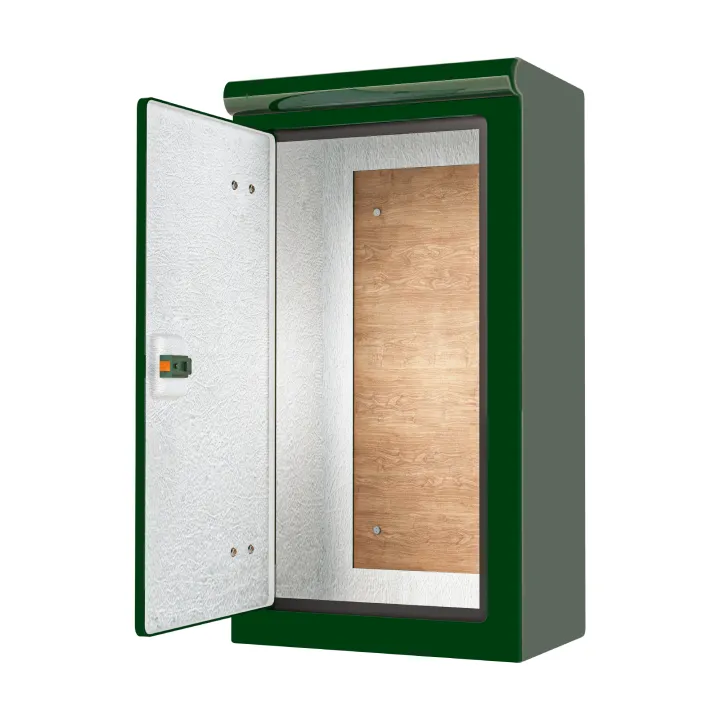 Our VR3 GRP Cabinet is available in Green (BS 14-C-39) and Grey (BS 10-A-05) as standard and is finished internally with a fire-retardant resin, it has a Single Skin Construction and comes complete with stainless steel hinges, security fixings, a cylinder nightlatch lock as well as a surface treated ply backboard, it has a closed base and is suitable for both floor or wall mounting. Delivery is normally made by National Carrier.