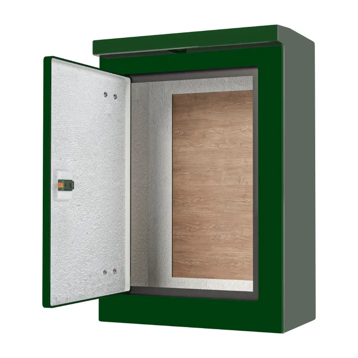 Our VR4 GRP Cabinet is available in Green (BS 14-C-39) and Grey (BS 10-A-05) as standard and is finished internally with a fire-retardant resin, it has a Single Skin Construction and comes complete with stainless steel hinges, security fixings, a cylinder nightlatch lock as well as a surface treated ply backboard, it has a closed base and is suitable for both floor or wall mounting. Delivery is normally made by National Carrier.