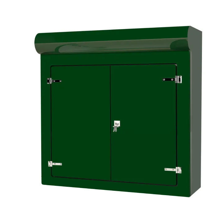 Our VR9 GRP Cabinet is available in Green (BS 14-C-39) and Grey (BS 10-A-05) as standard and is finished internally with a fire-retardant resin, it has a Single Skin Construction and comes complete with stainless steel hinges, security fixings, a cylinder nightlatch lock as well as a surface treated ply backboard, it has an open base c/w an internal fixing down flange for floor mounting. Delivery is normally made by National Carrier.